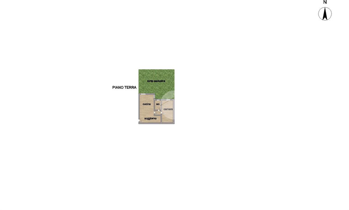 Proponiamo in vendita luminoso bilocale al piano terra con corte esclusiva e box auto privato, situato in una zona residenziale tranquilla e ben servita.